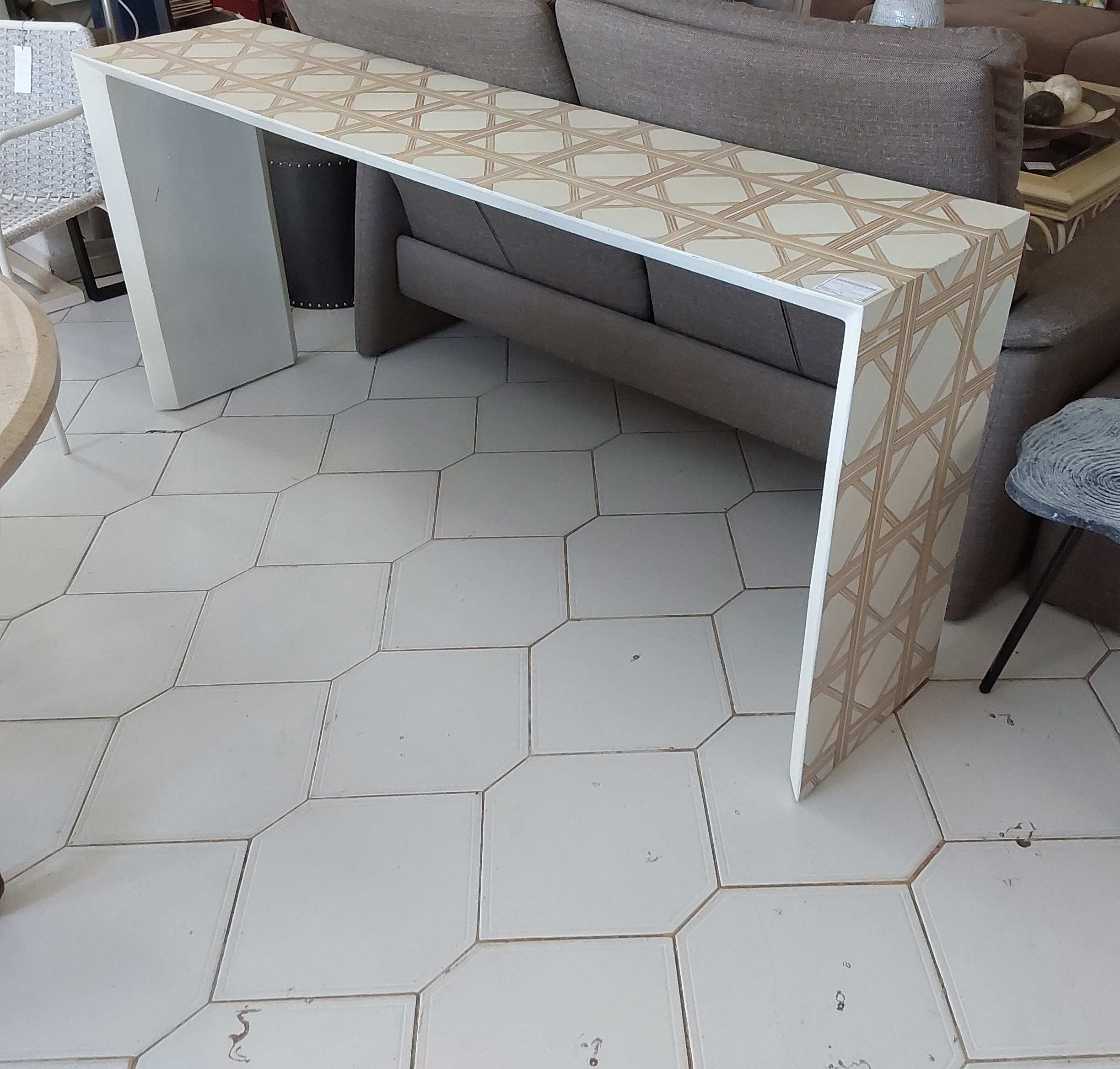 491/22. 2 AVAILABLE - Large half-moon console with metal bas ...