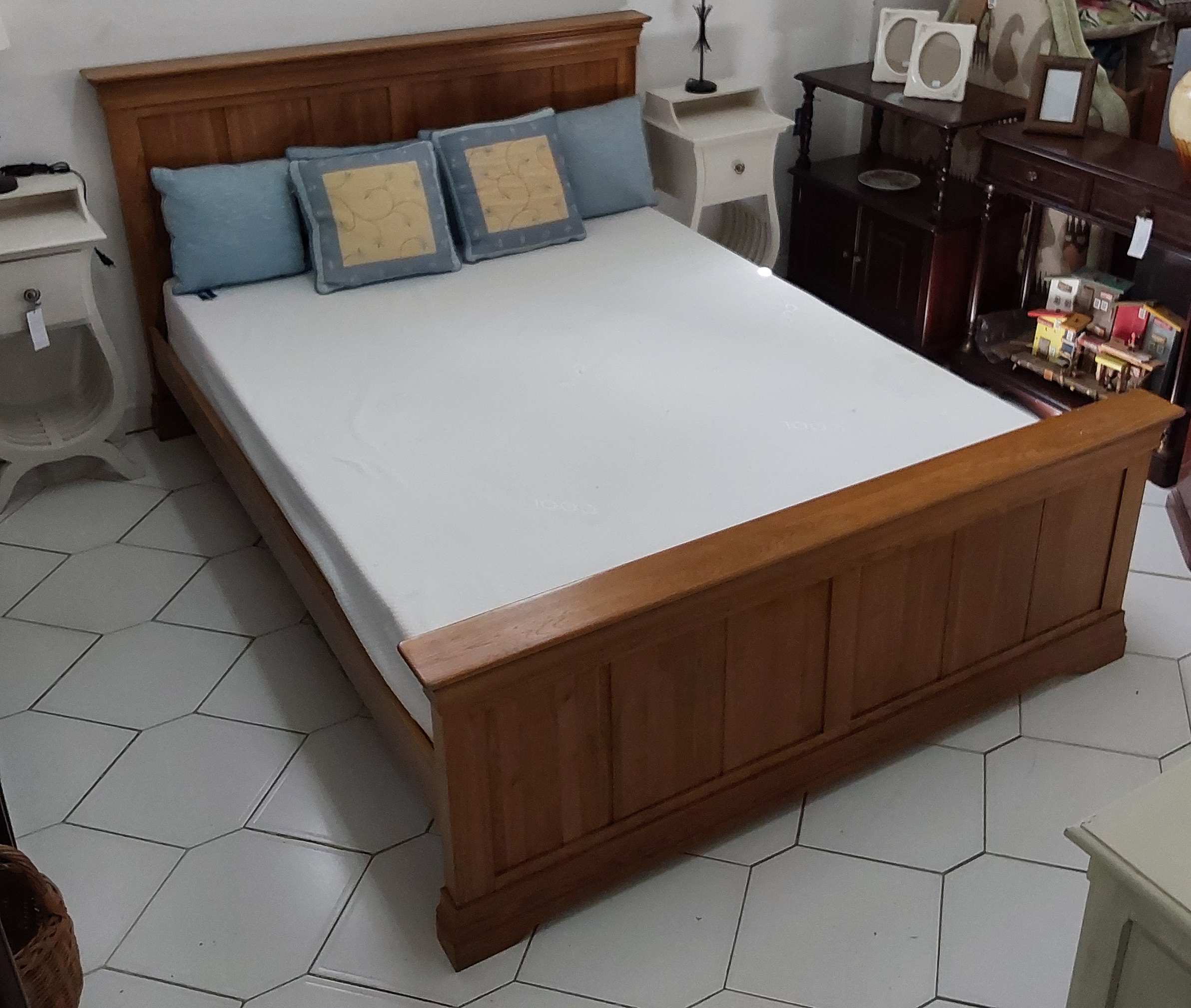 475/5. Double bed, wooden base including headboard and mattr ...