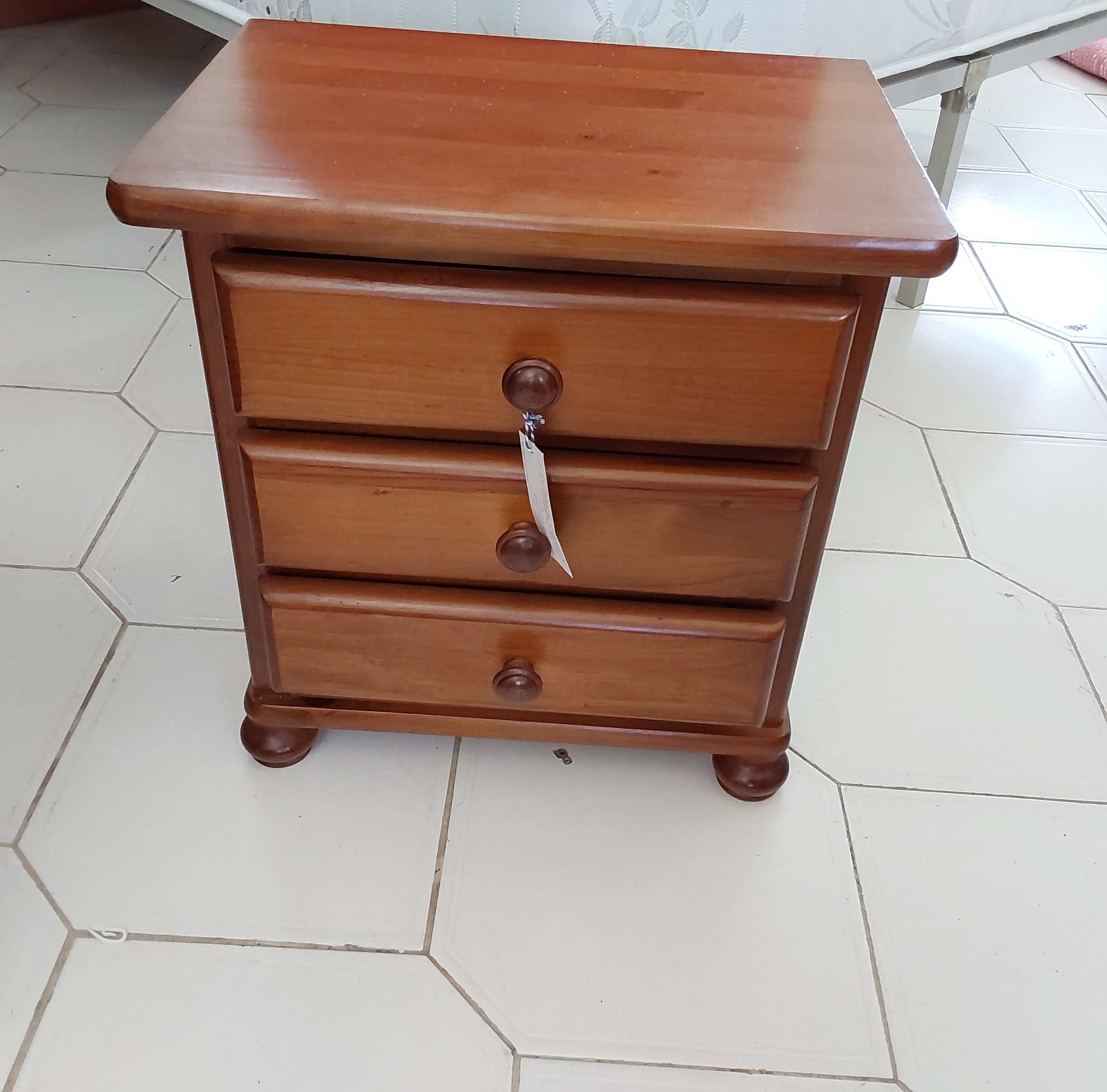 463/44. Bedside table with two drawers, dark brown with glass top