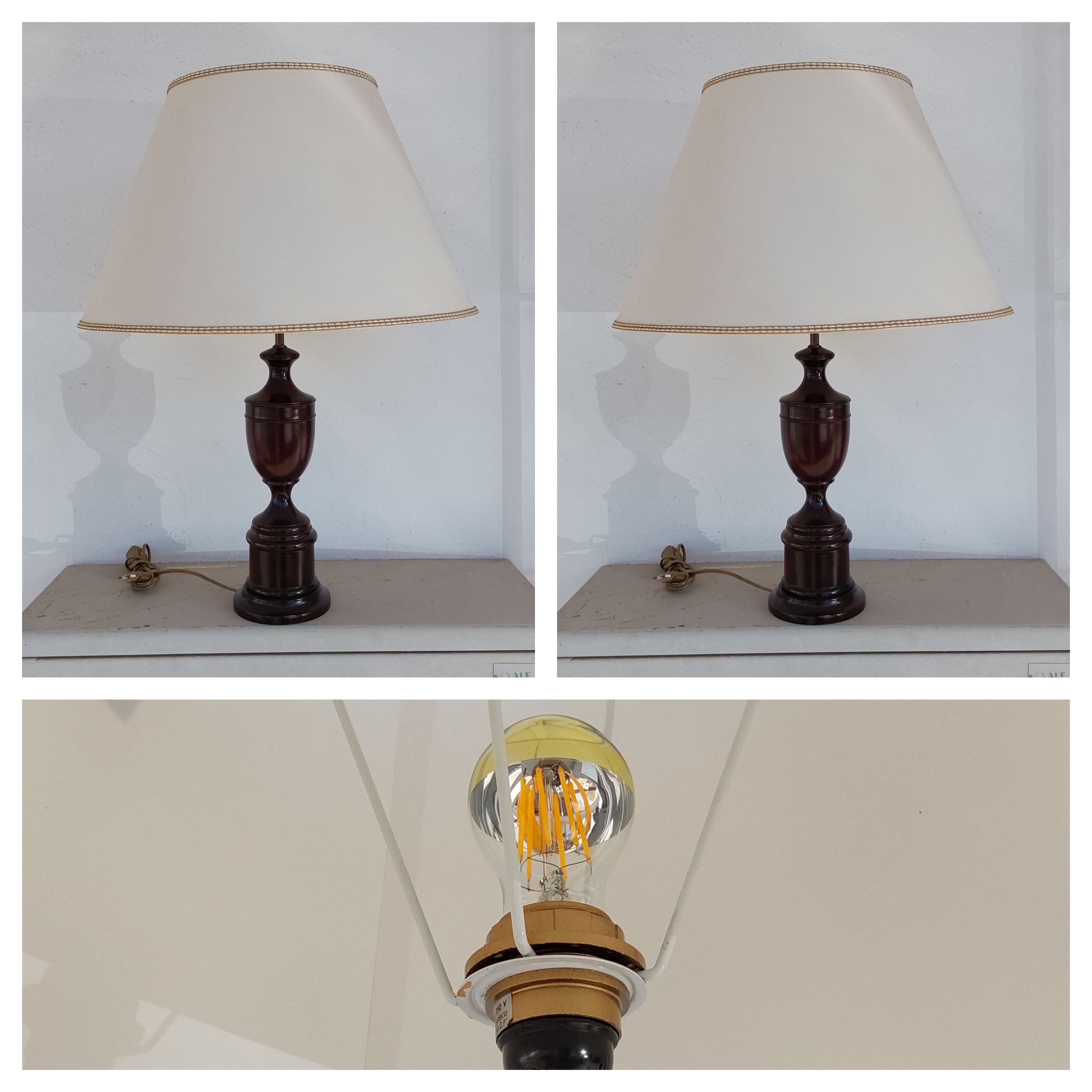 462/77. Pair of lamps with wooden bases and cream shad ...