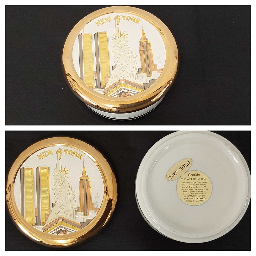 426/66 Ceramic box engraved in silver and gold, ...