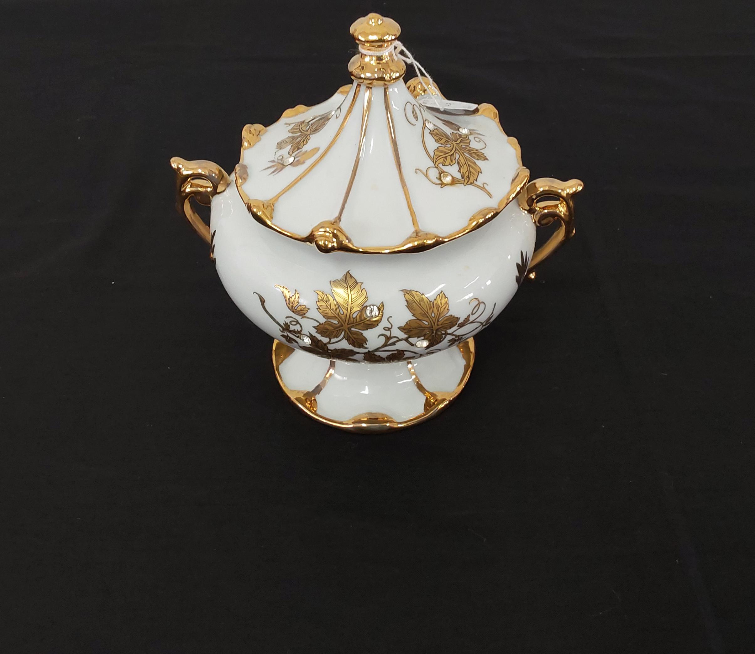 426/68. Porcelain pot with lid, gold and white ...