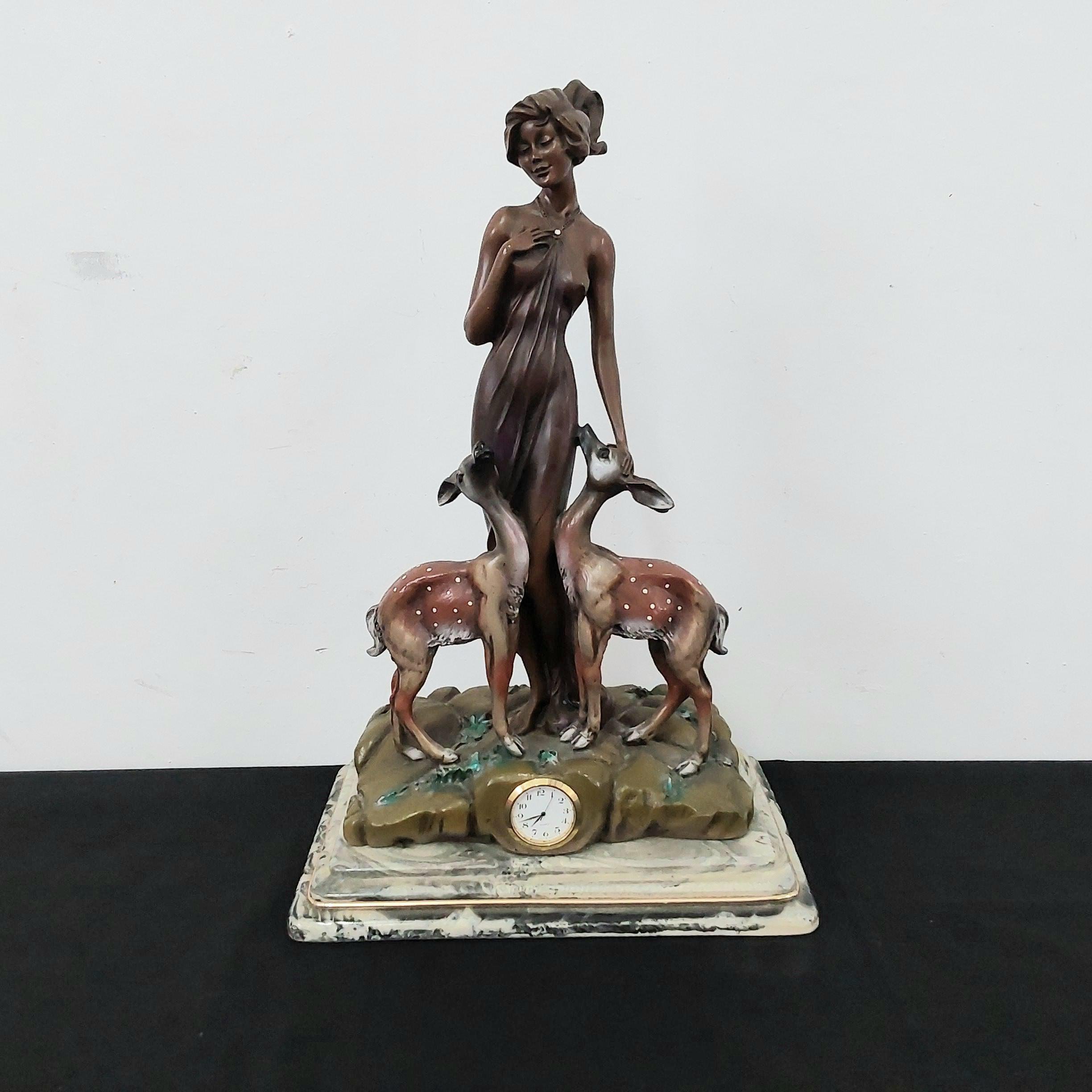 426/69. Art Deco style clock "girl with two deers" ...