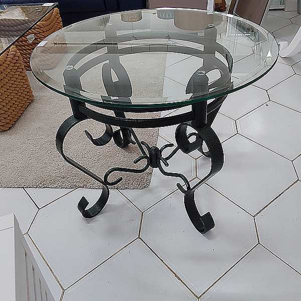 C290/3. Sidetable with bevelled glass top and metal frame ...