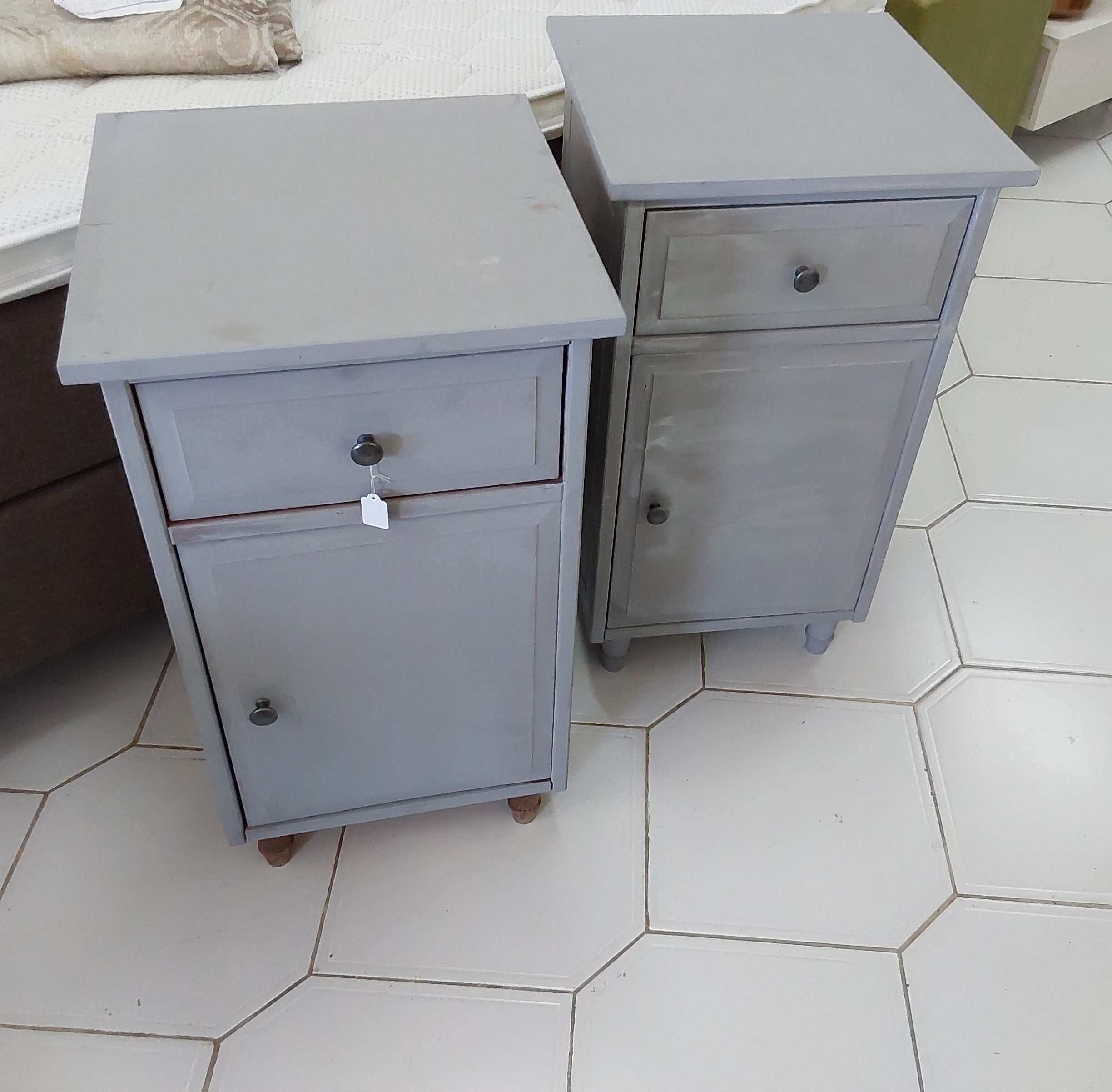 494/2.  Pair of wooden bedside tables painted grey with ...